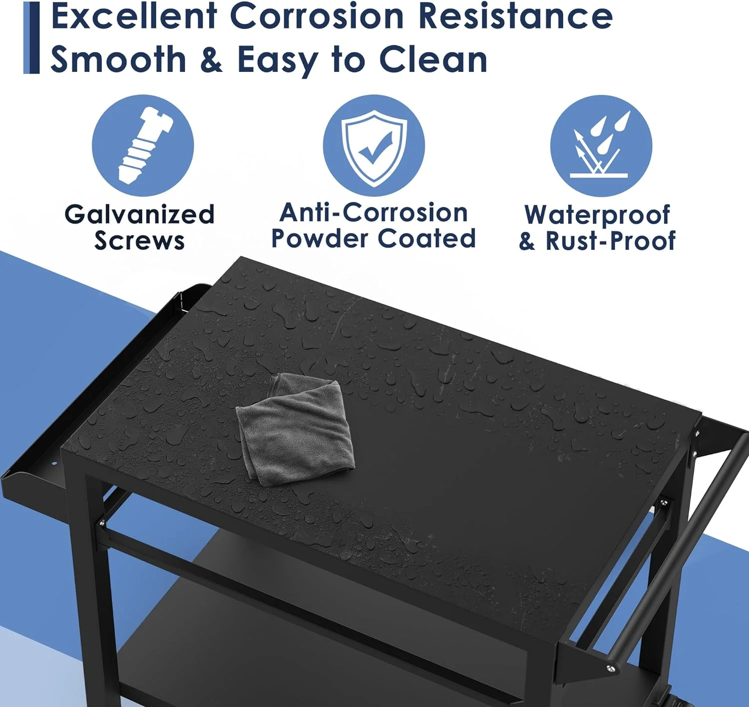 Crafted with a sturdy powder-coated steel frame, smooth, waterproof, and rustproof surface ensures long-lasting durability