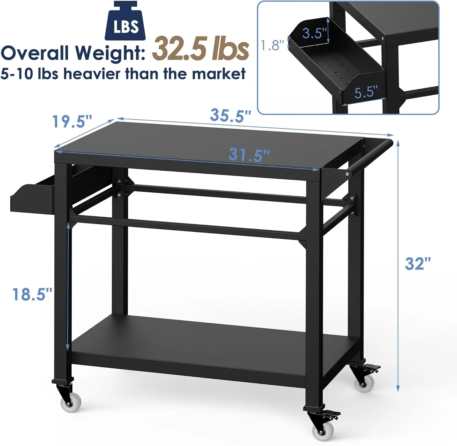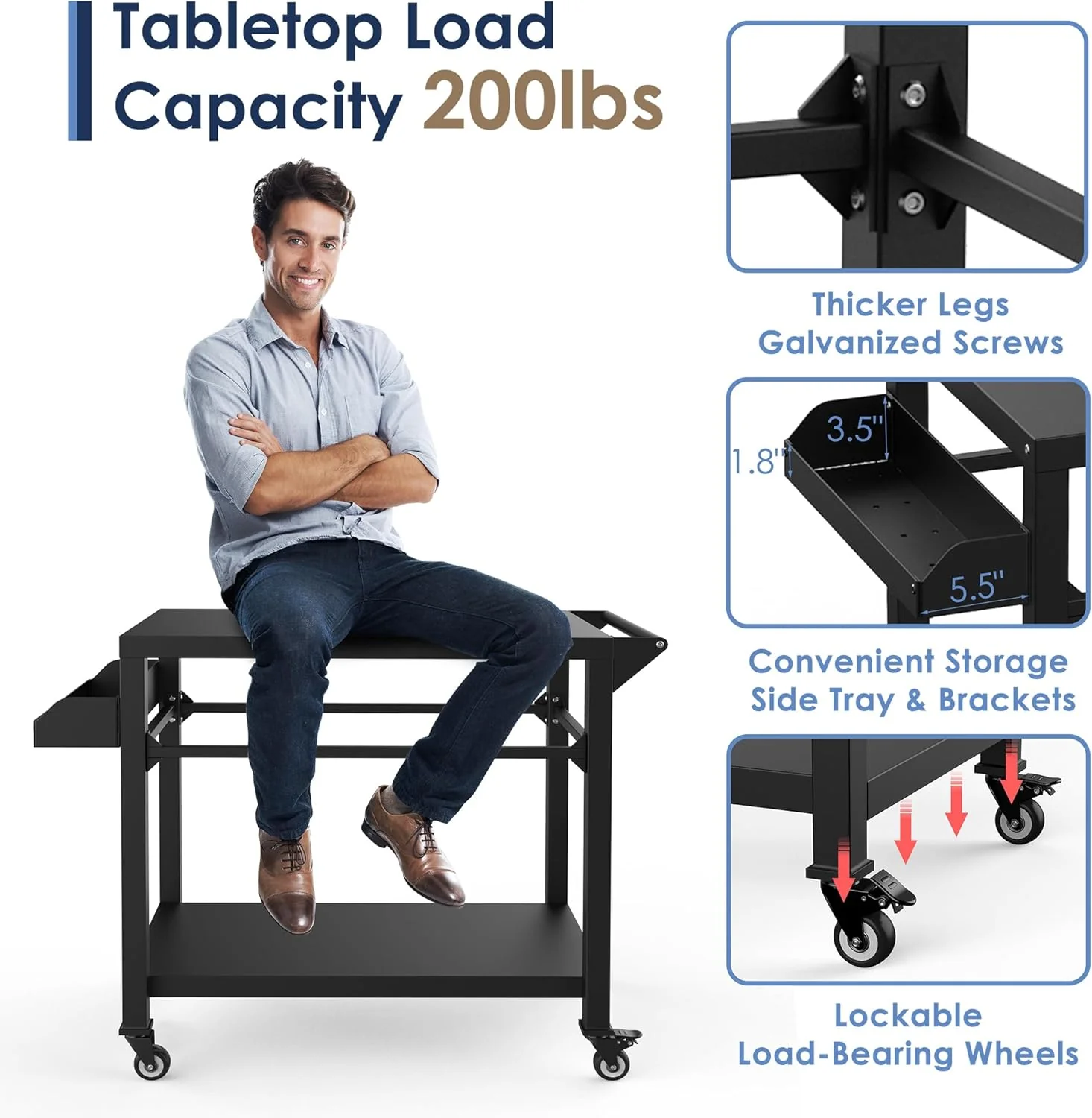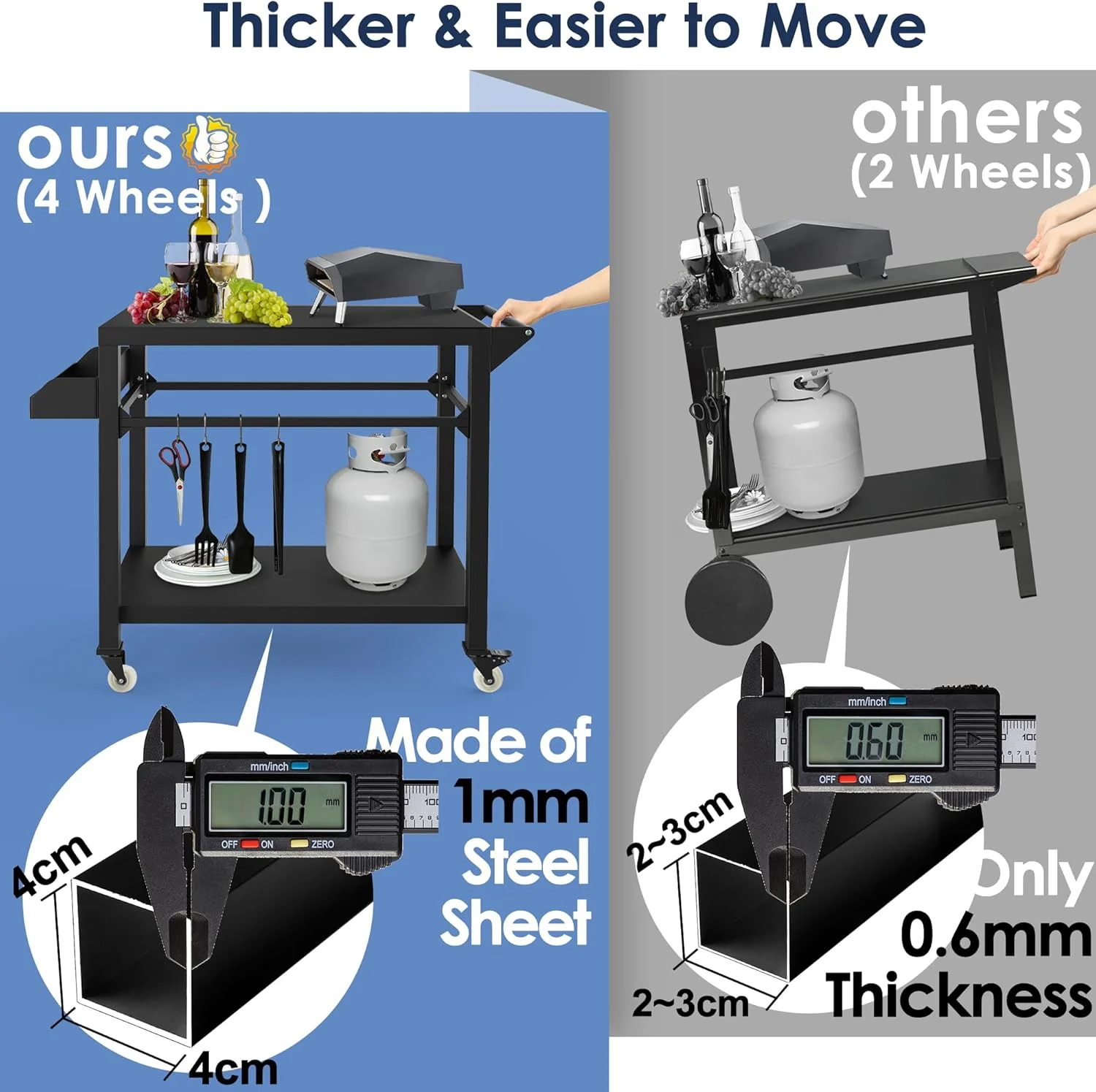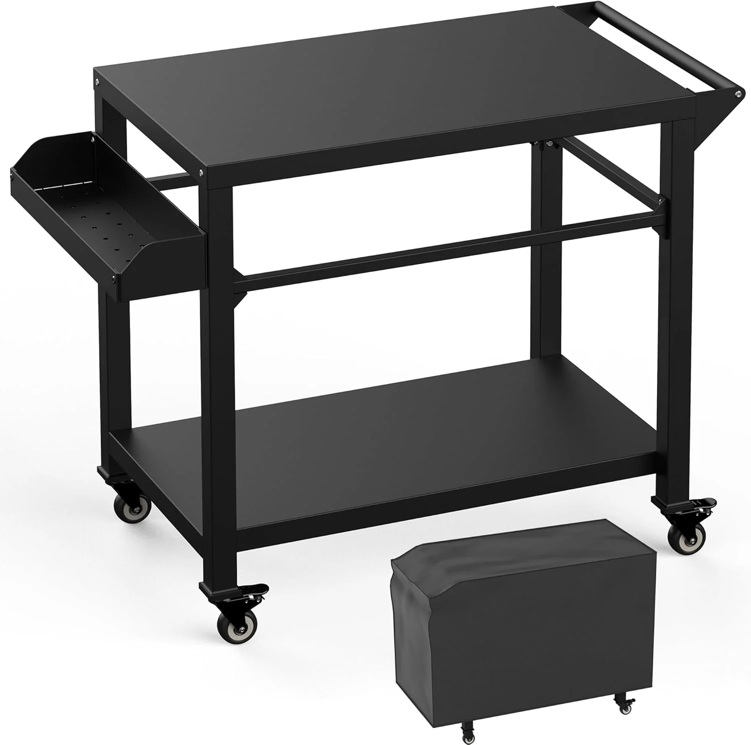 Heavy duty grill cart, serve as a pizza oven stand, outdoor grill table, outdoor food prep table etc.